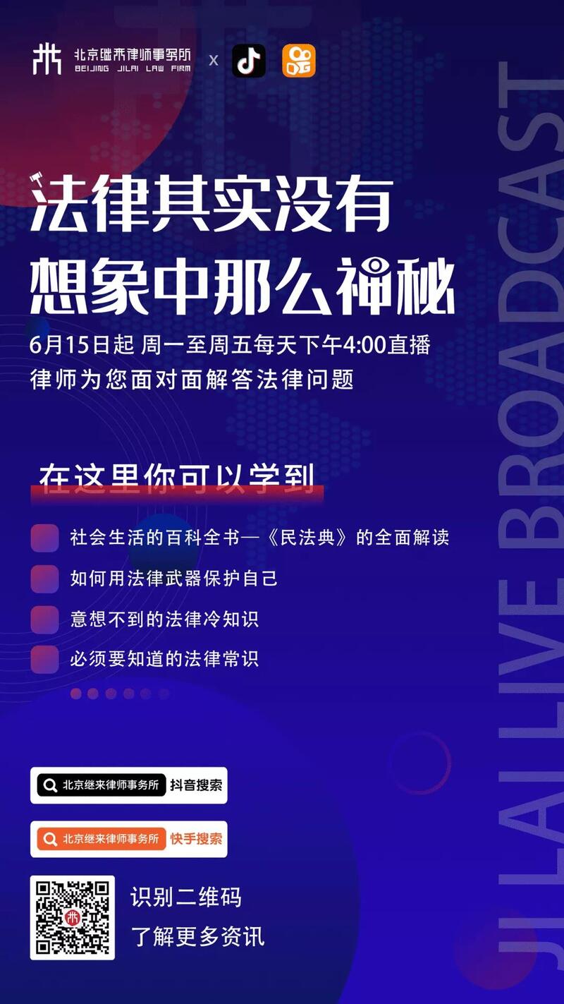 2020年6月15日起,周一至周五每天下午4:00继来律师在直播间为您一一解答。