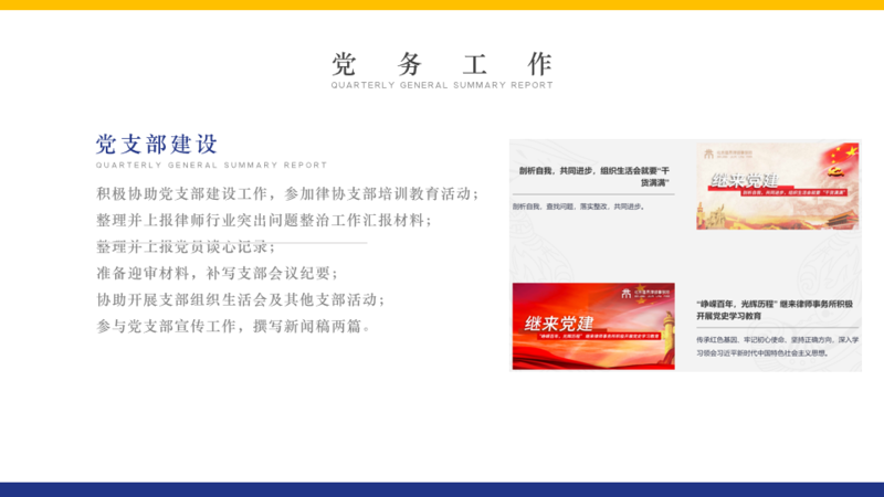刑事部实习律师姜辰在述职中介绍了自己加入继来刑事部后学到了很多业务上的知识,完成了从法学专业学生到从事实务工作的律师助理的心态转变。另外,他还“意外”接手了所内的党务工作,看着今年党务工作做得风风火火姜辰也感觉非常有成就感。